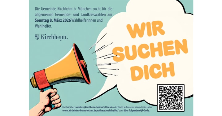 Die Gemeinde Kirchheim b. München sucht für die allgemeinen Gemeinde- und Landkreiswahlen am 08.03.2026 engagierte Wahlhelferinnen und Wahlhelfer. Haben…
