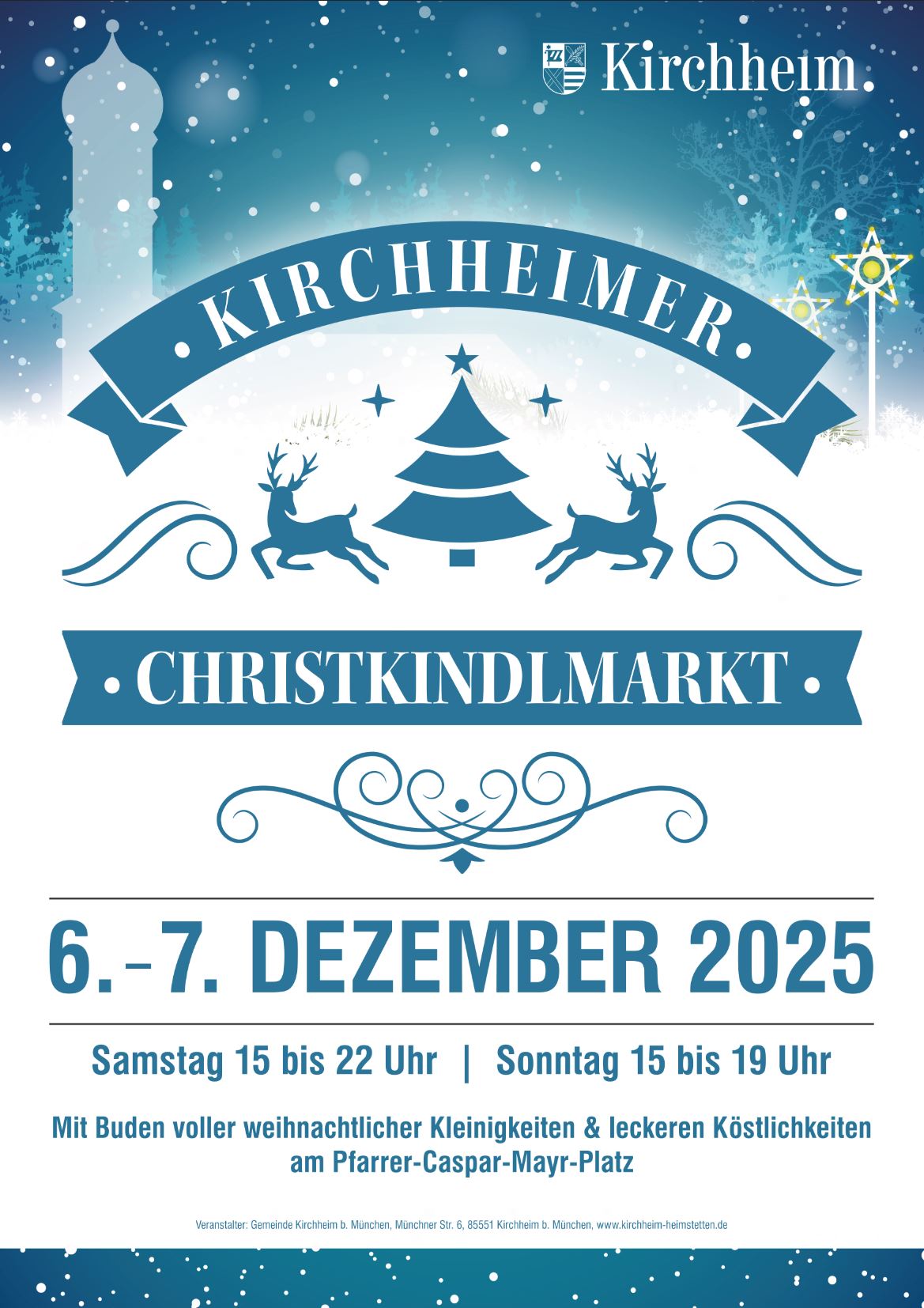 In diesem Jahr findet der traditionelle Kirchheimer Christkindlmarkt vom 6. – 7. Dezember wieder am Pfarrer-Caspar-Mayr-Platz statt. Klein, aber fein und ganz besonders – denn er ist von Bürgern für Bürger.