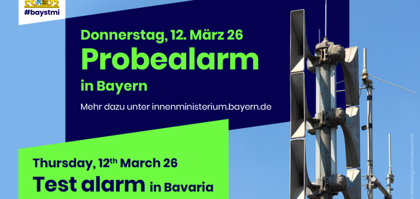 Am 12. März 2026 findet der jährliche landesweit einheitliche Probealarm in Bayern statt. Es besteht keine Gefahr für die Bevölkerung.
