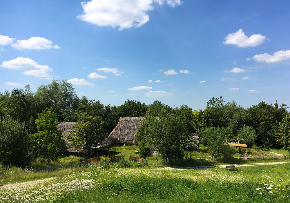 Wie lebten die Menschen früher? Wie sahen ihre Siedlungen und Häuser aus? Was wurde gegessen, welche Kleidung getragen und wie wurden diese Dinge hergestellt? All das steht im Zentrum dieses archäologischen Langzeitprojekts. Und dabei finden nur Werkzeuge und Materialien Verwendung, die auch den damaligen Menschen im frühen Mittelalter zur Verfügung standen. So werden zum Beispiel beim Bau der Häuser sämtliche Hölzer von Hand zugerichtet und die Wände mit Lehm verputzt.