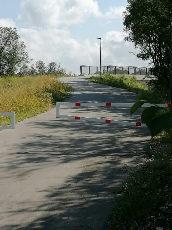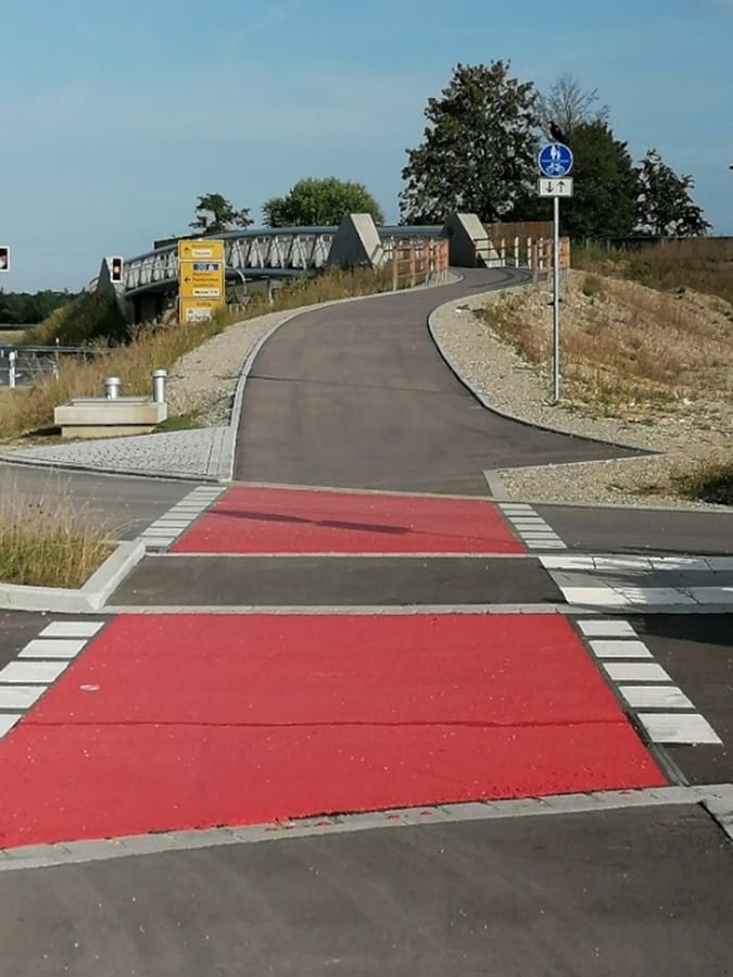 Bereits wenige Tage nach der Eröffnung schafft die neue Fuß- und Radweg Brücke über die St 2082 Martin Luther- Str. / Ecke Ludwigstraße zur Parkallee im Baugebiet Kirchheim 2030 kürzere Wege für die Bürgerinnen und Bürger der Gemeinde.