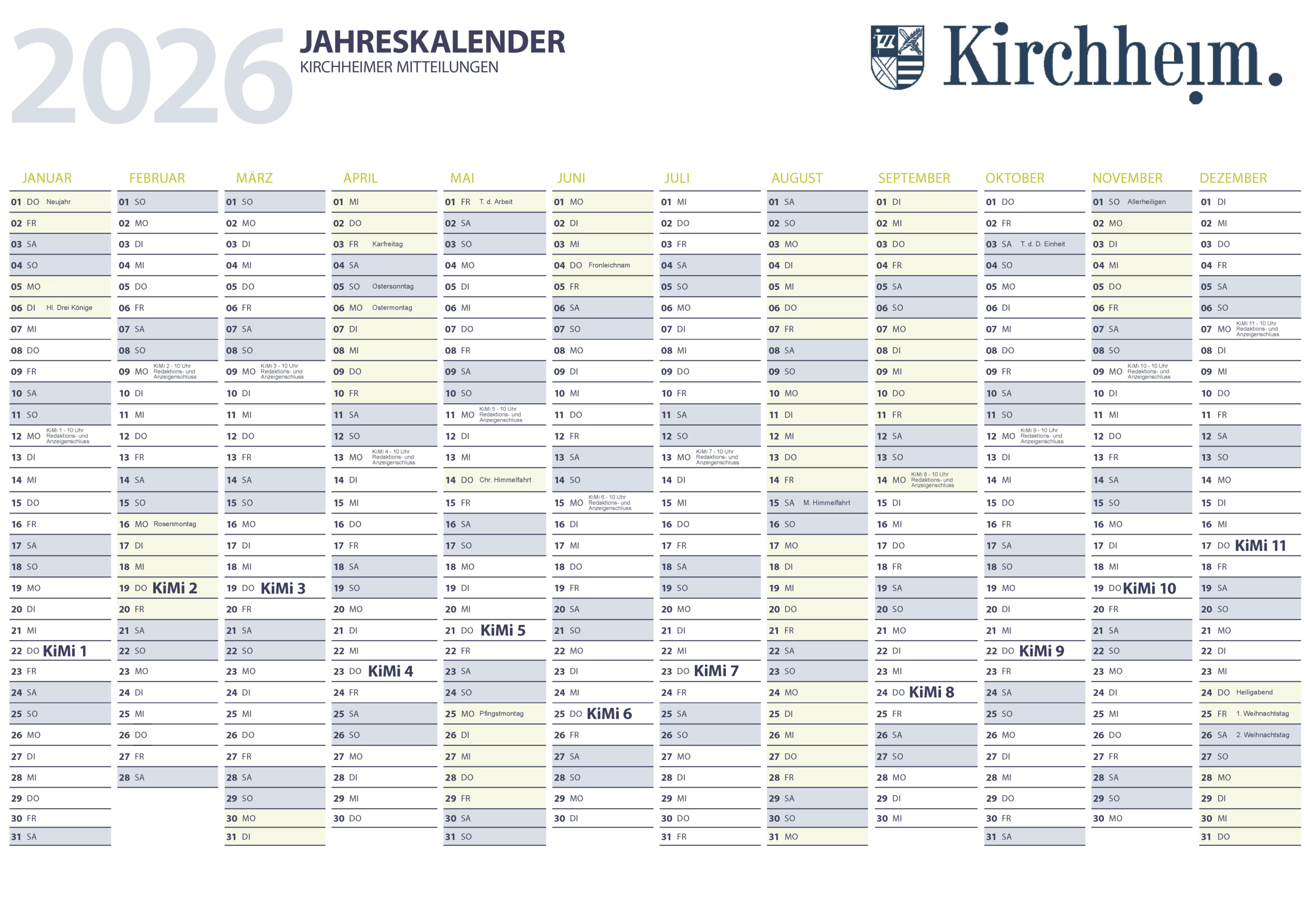 Hier auf der Homepage der Gemeinde Kirchheim können sie sich die KiMi wie bisher digital als PDF herunterladen.