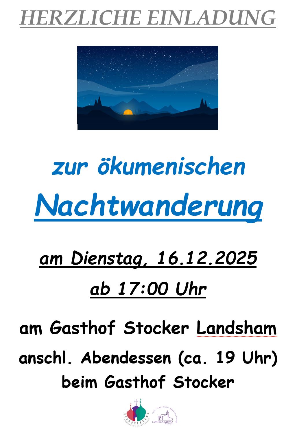 Ökumenische Nachtwanderung mit Abendessen bei Gasthof Stocker in Landsham
