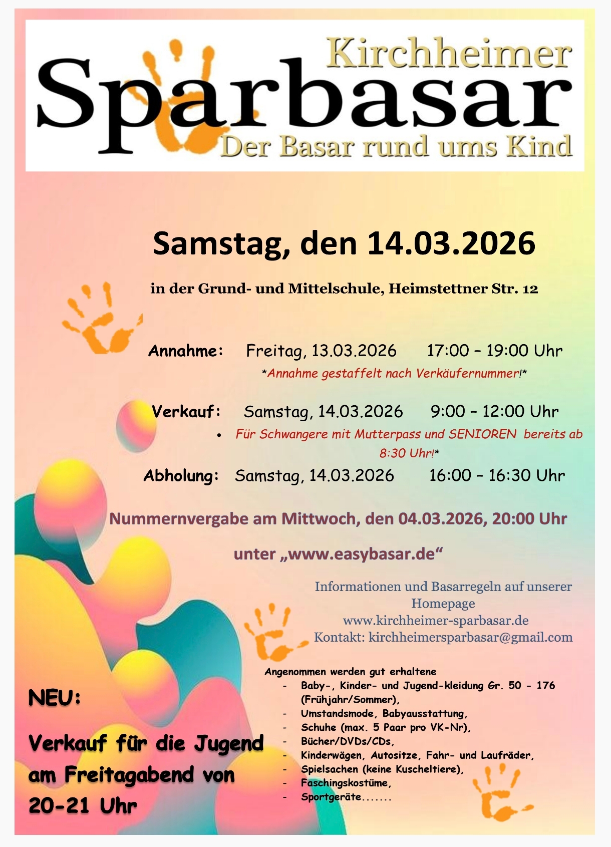 Nummernvergabe Verkäufer am Mittwoch, den 4.3. um 20h auf www easybasar.de
