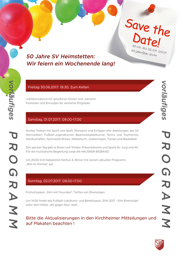 50 Jahre SV Heimstetten – gefeiert wird ein Wochenende lang von 30. Juni bis 2. Juli.